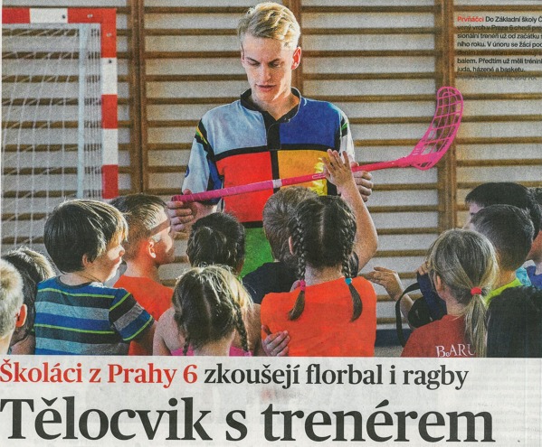 Dnes o nás napsali v MF DNES: "Tělocvik s trenérem" - Školáci z Prahy 6 zkoušejí florbal i ragby. Přinášíme přepis článku.