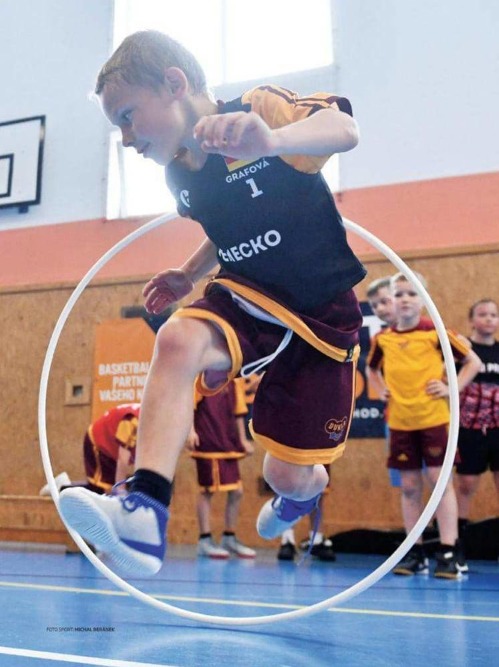 Tak prosím nakoukněme na rozcvičku v basketbalové sekci. Žáci